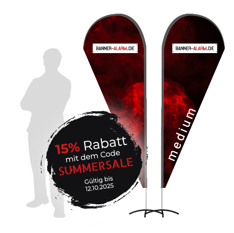 Die Beachflag Drop Medium ist perfekt für Messen, Outdoor-Events oder Werbeaktionen im Einzelhandel. Sie bietet eine erhöhte Sichtbarkeit durch ihre größere Präsenz, bleibt jedoch flexibel einsetzbar. Das zeitlose Tropfendesign verleiht Ihrer Werbung einen modernen und professionellen Look.