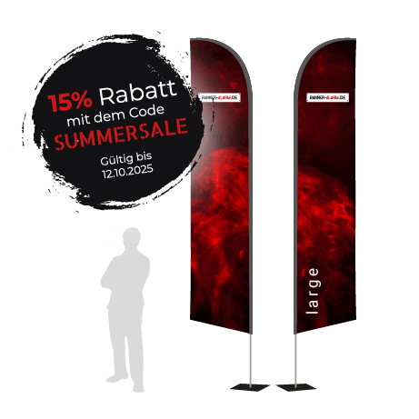 Die Beachflag Wind Large von Banner-Alarm.de in Wiesbaden und Mainz ist in ihrer Form besonders witterungsbeständig und daher auch für windigere Bereiche hervorragend geeignet. Somit ist sie die ideale Flagge für Außenbereiche, aber auch in Innenbereichen zieht sie die Blicke der Passanten auf sich. Deshalb kann sie optimal als Wegweiser oder zur Kommunikation von Botschaften genutzt werden, beispielsweise auf Messen und Events, bei Produktvorstellungen oder Geschäftseröffnungen. Aber auch als dauerhafter Werbeträger vor Autowerkstätten, an Ständen in der Fußgängerzone oder als Außenwerbung vor dem Einzelhandel ist sie dank ihrer Stabilität bestens geeignet.