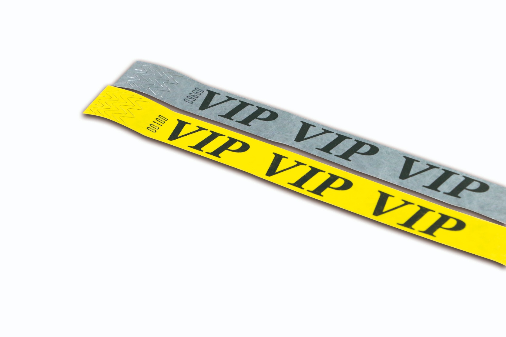 Die praktischen Einlassbänder aus papierähnlichem und reißfestem Tyvek von Banner-Alarm in Wiesbaden und Mainz werden mit einem Klebestreifen verschlossen. Beim Öffnen des Klebestreifens wird die Perforation am Band zerstört. Somit sind unsere Tyvek-Bänder genau so sicher wie Einlassbänder mit Plastik-Verschluss und nicht übertragbar.