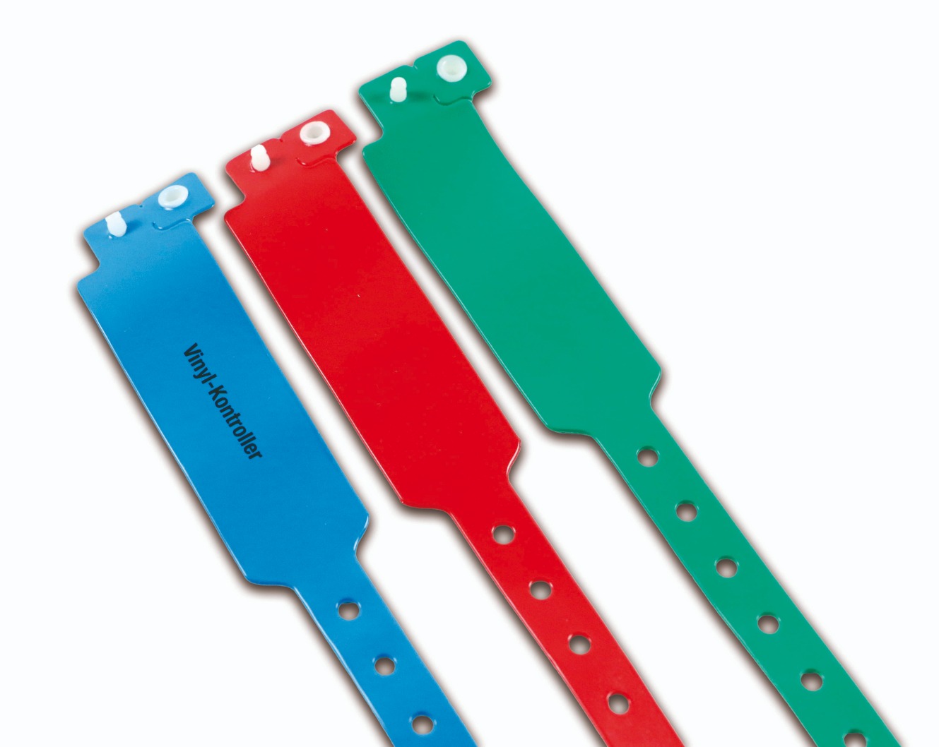 Einlassbänder von Banner-Alarm in Wiesbaden und Mainz aus Vinyl, höchster Tragekomfort, nicht übertragbar in 21 Farben.