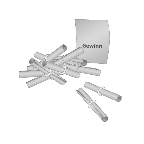 Wählen Sie im Kalkulator die Anzahl unterschiedlicher Eindrucke aus (z.B. 2 Stück - Gewinne und Nieten) und teilen Sie uns in den Druckdaten mit, wie viele Lose Sie je Version bestellen möchten.