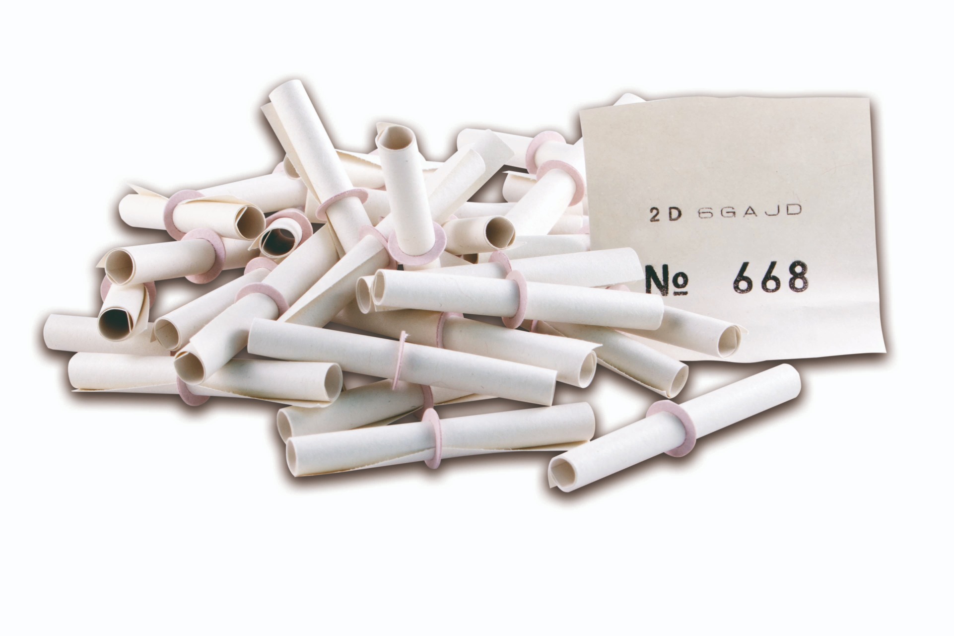 Schon fast 100 Jahre alt, aber noch immer Bestseller - die Röllchenlose von Banner-Alarm in Wiesbaden und Mainz. Das liegt sicher an ihrer Einfachheit, am Rascheln in der Losbox und an der Spannung beim Öffnen der Lose.