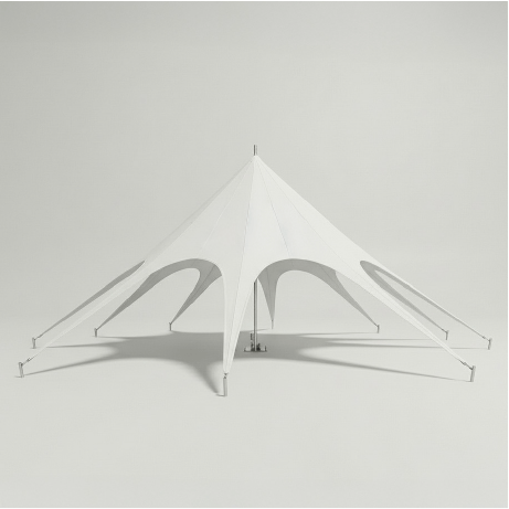 Ein Sternzelt ist weit mehr als nur eine Überdachung. Es ist ein architektonisches Highlight, das durch seine elegante Silhouette und die enorme Fernwirkung besticht. Unser Sternzelt 10x10m einfarbig schafft eine offene Atmosphäre der Leichtigkeit und bietet gleichzeitig zuverlässigen Schutz vor Witterungseinflüssen. Ob für Firmen-Events, Hochzeiten oder exklusive Promotion-Touren, dieses Profi-Sternzelt garantiert den gewünschten WOW-Effekt bei Ihren Gästen.
