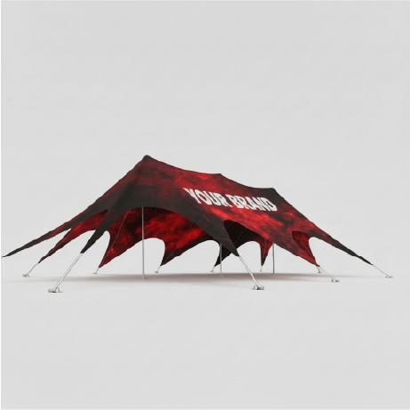 Eindrucksvolles Dreimast-Sternzelt 10x17,5 m mit individueller Bedruckung für Ihre Großveranstaltung. Maximale Werbefläche trifft auf höchste Stabilität und ein spektakuläres Design. Konfigurieren Sie jetzt Ihr Triple Star Tent für den professionellen Einsatz bei Firmen-Events oder Promotion-Touren.