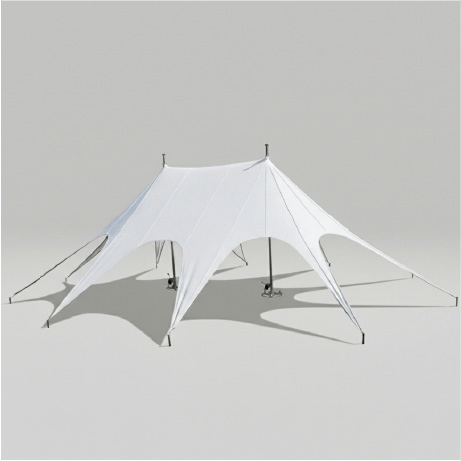 Wenn Sie eine weitläufige und zugleich elegante Überdachung suchen, ist unser Sternzelt 12,6 x 17,2 m die perfekte Wahl. Das Zweimast-System, auch als Doppel-Star-Tent bekannt, vermittelt ein einzigartiges Gefühl von Weite und Leichtigkeit. Dank seiner beeindruckenden Silhouette bietet es eine spektakuläre Fernwirkung und schützt Ihre Gäste zuverlässig vor Witterungseinflüssen, ohne die Sicht auf das Event-Geschehen zu versperren.