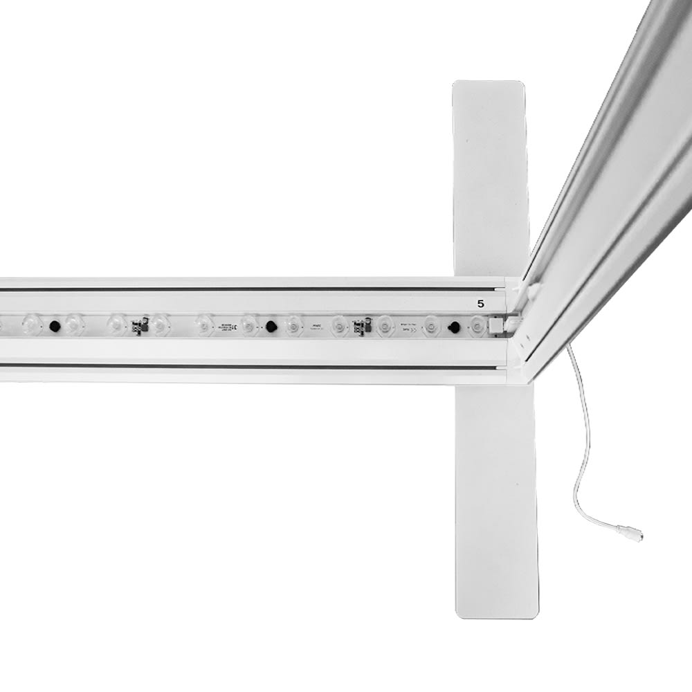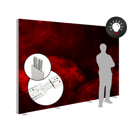 Die wahlweise beidseitig beleuchteten Textilgrafiken mit Silikonkeder spannen sich nahtlos in den Rahmen ein und erzeugen eine brillante, homogene Ausleuchtung. Das System ist in fünf Breiten erhältlich und kann durch Erweiterungsmodule (85 cm oder 100 cm) auf bis zu 785 cm verlängert werden. Perfekt für Messestände, Point-of-Sale-Installationen oder großflächige Markeninszenierungen.