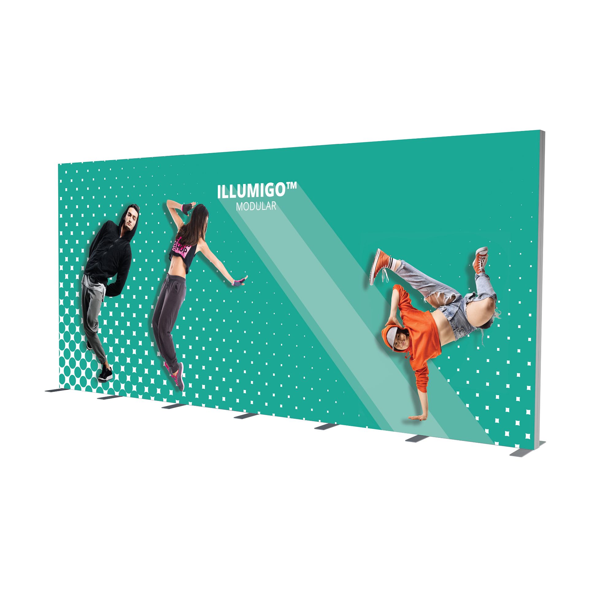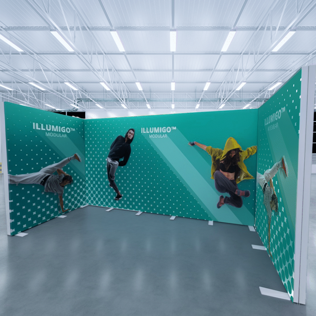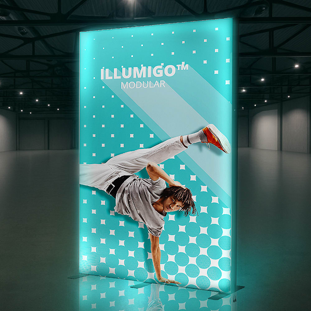 Der illumiGO™ Modular 585 × 248 cm ist ein leistungsstarkes, beleuchtetes Präsentationssystem für beeindruckende Markenauftritte. Sein pulverbeschichteter 120-mm-Aluminiumrahmen ist mit vormontierten LED-Modulen ausgestattet und lässt sich dank praktischer Klickverschlüsse komplett werkzeuglos aufbauen. Die Standfüße werden einfach eingesteckt und mit Flügelschrauben fixiert – schnell, sauber und stabil.