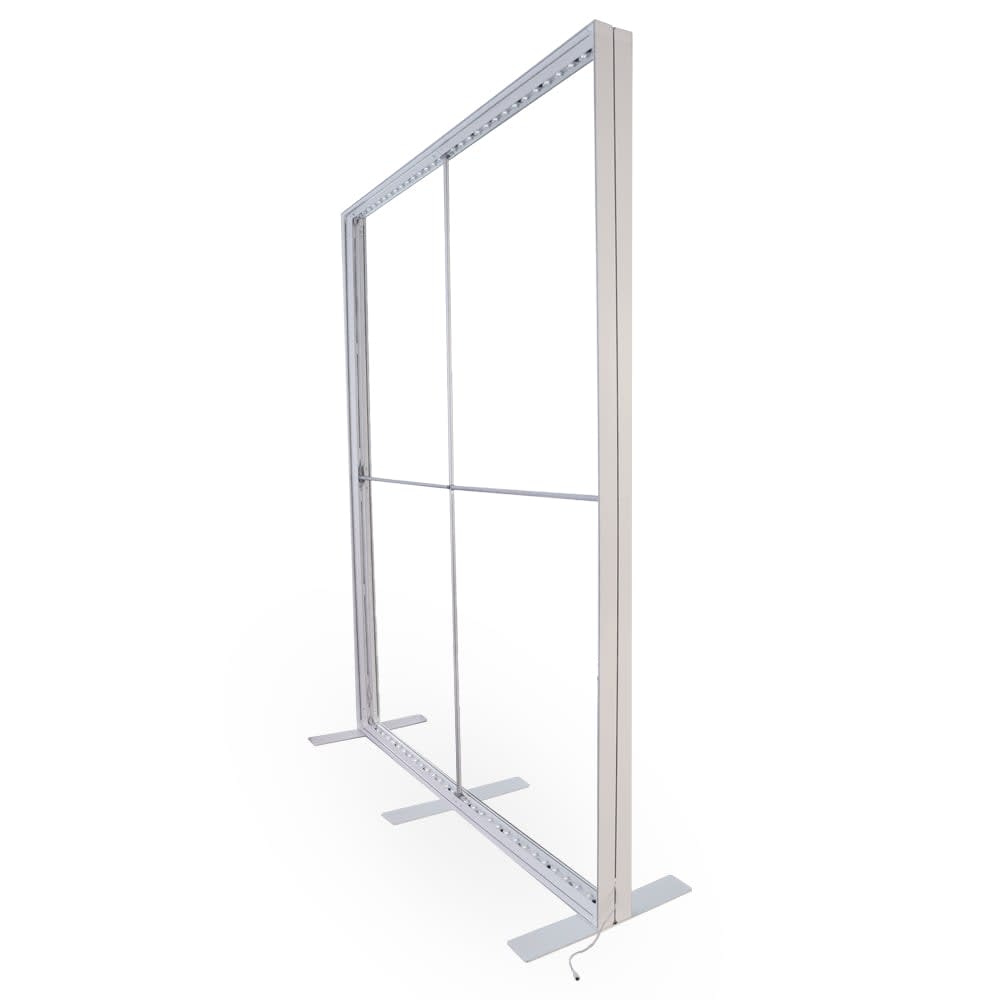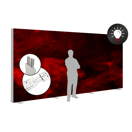 Die wahlweise beidseitig beleuchteten Textilgrafiken mit Silikonkeder spannen sich nahtlos in den Rahmen ein und erzeugen eine brillante, homogene Ausleuchtung. Das System ist in fünf Breiten erhältlich und kann durch Erweiterungsmodule (85 cm oder 100 cm) auf bis zu 785 cm verlängert werden. Perfekt für Messestände, Point-of-Sale-Installationen oder großflächige Markeninszenierungen.