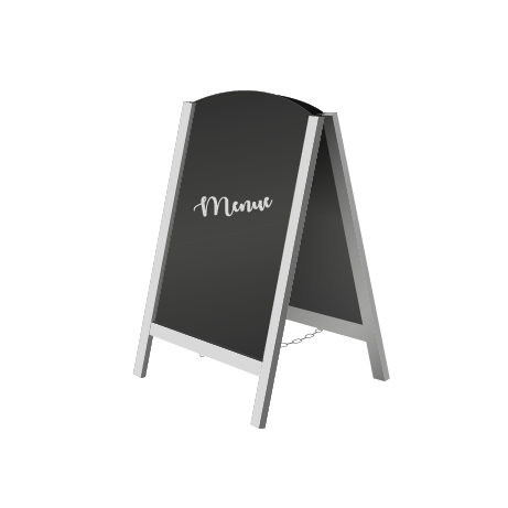 Der Kundenstopper Kreidetafel gebogen von Banner-Alarm in Wiesbaden und Mainz präsentiert Ihre Werbung mit einer besonders eleganten Wirkung. Das abgerundete, profillose Top ist sowohl im Innen- sowie im Außenbereich ein besonderer Blickfang für Ihre Kunden. Der Kundenstopper kann problemlos mit Flüssigkreidestiften, aber auch mit gängiger Kreide beschriftet werden. Seine Tafeloberfläche von 600 x 1010 mm ist leicht abwaschbar.