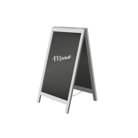 Der Kundenstopper kann beidseitig mit Flüssigkreidestiften, aber auch mit gängiger Kreide beschriftet werden. Selbsverständlich finden Sie farbige Flüssigkreidestifte auch direkt bei uns im Shop