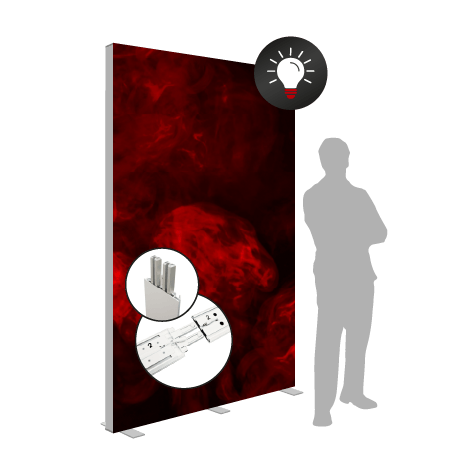 Die wahlweise beidseitig beleuchteten Textilgrafiken mit Silikonkeder spannen sich nahtlos in den Rahmen ein und erzeugen eine brillante, homogene Ausleuchtung. Das System ist in fünf Breiten erhältlich und kann durch Erweiterungsmodule (85 cm oder 100 cm) auf bis zu 785 cm verlängert werden. Perfekt für Messestände, Point-of-Sale-Installationen oder großflächige Markeninszenierungen.