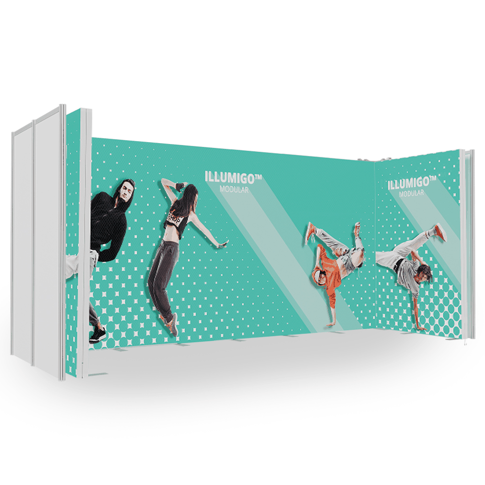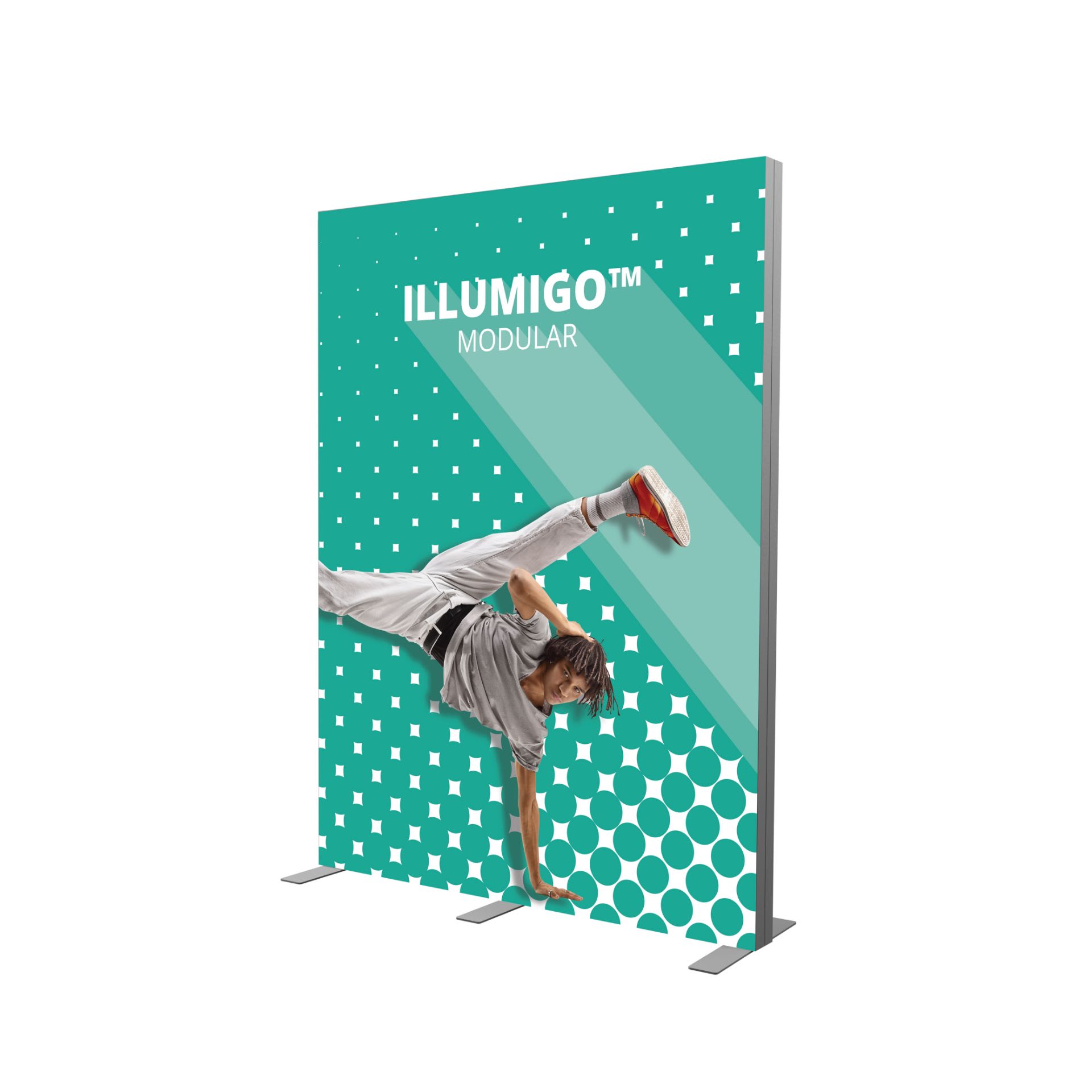 Der illumiGO™ Modular 185 × 248 cm ist ein leistungsstarkes, beleuchtetes Präsentationssystem für beeindruckende Markenauftritte. Sein pulverbeschichteter 120-mm-Aluminiumrahmen ist mit vormontierten LED-Modulen ausgestattet und lässt sich dank praktischer Klickverschlüsse komplett werkzeuglos aufbauen. Die Standfüße werden einfach eingesteckt und mit Flügelschrauben fixiert – schnell, sauber und stabil.